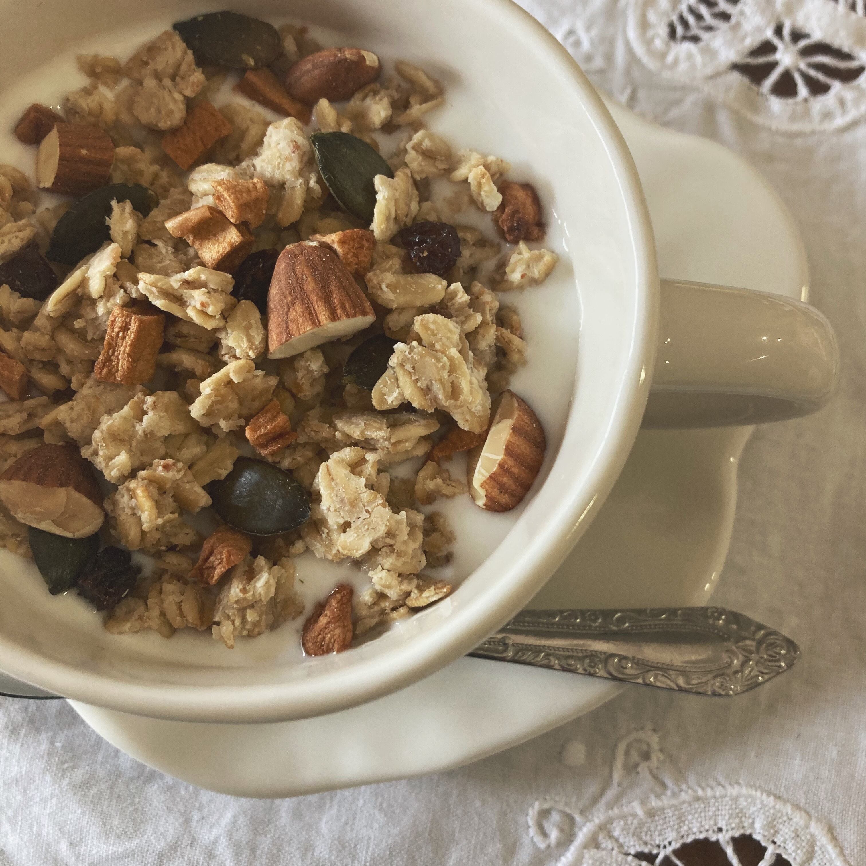3種(有機レーズン.有機いちじく.有機デーツ)のフルーツ、アクセントの香ばしいまろやかでクリーミーな有機アーモンド、ガツンとスパイス香るオーツ麦、それぞれの個性の調和をぜひお楽しみください♩