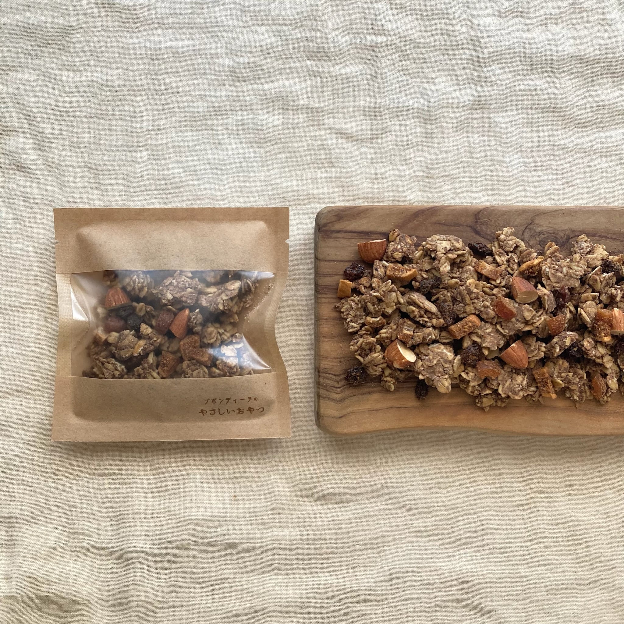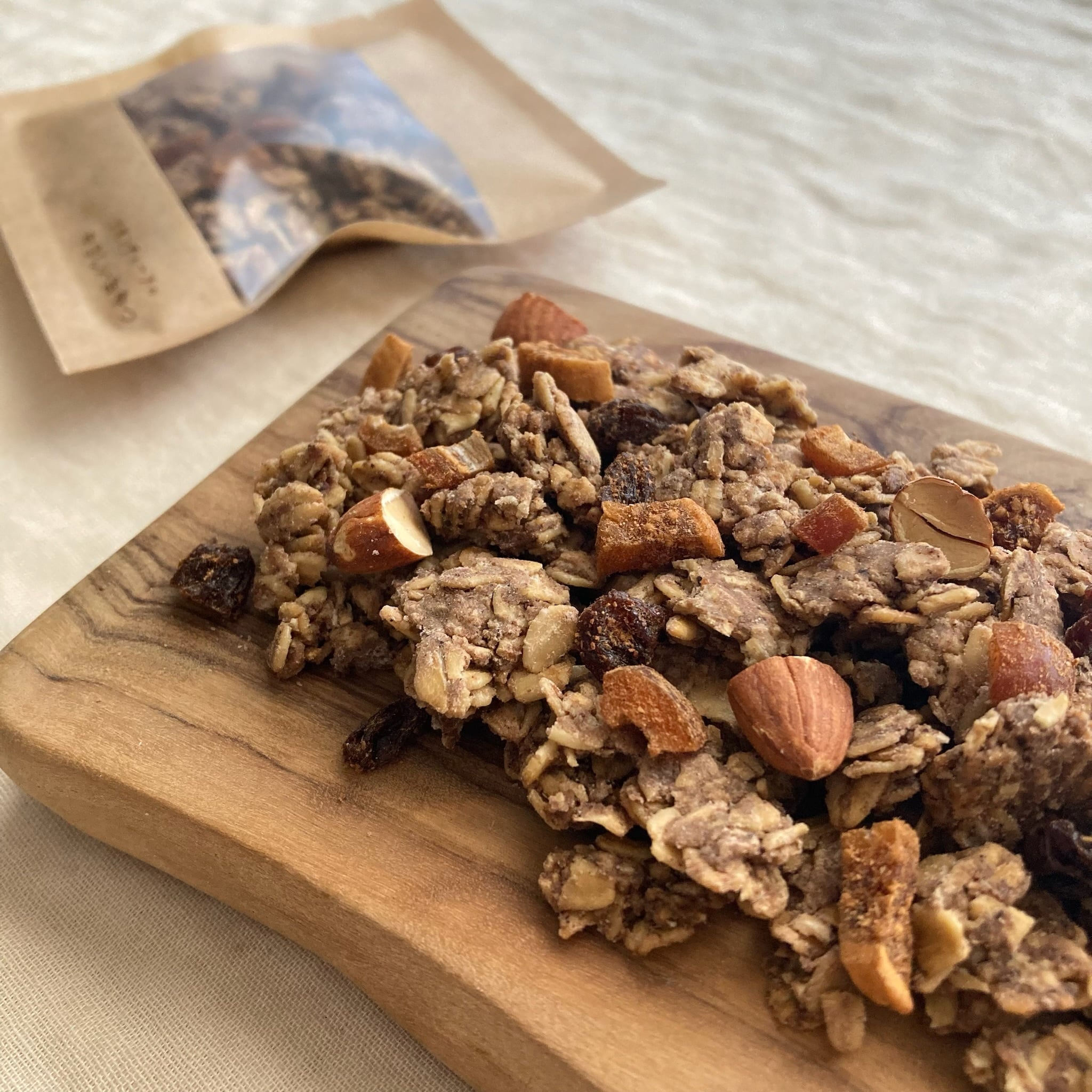 【原材料名】:有機オートミール(有機オーツ麦(アメリカ産))、栽培期間中農薬不使用米粉(米(京都産))、菜種油(農薬不使用菜種(熊本県産))、有機ココナッツオイル(フィリピン産)、有機レーズン(トルコ産)、有機アーモンド(アメリカ産)、有機いちじく(トルコ産)、有機デーツ(チュニジア産)、有機オールスパイス(グアテマラ産)、有機シナモン(スリランカ産)、自然海塩(五島列島)、(一部にアーモンドを含む)