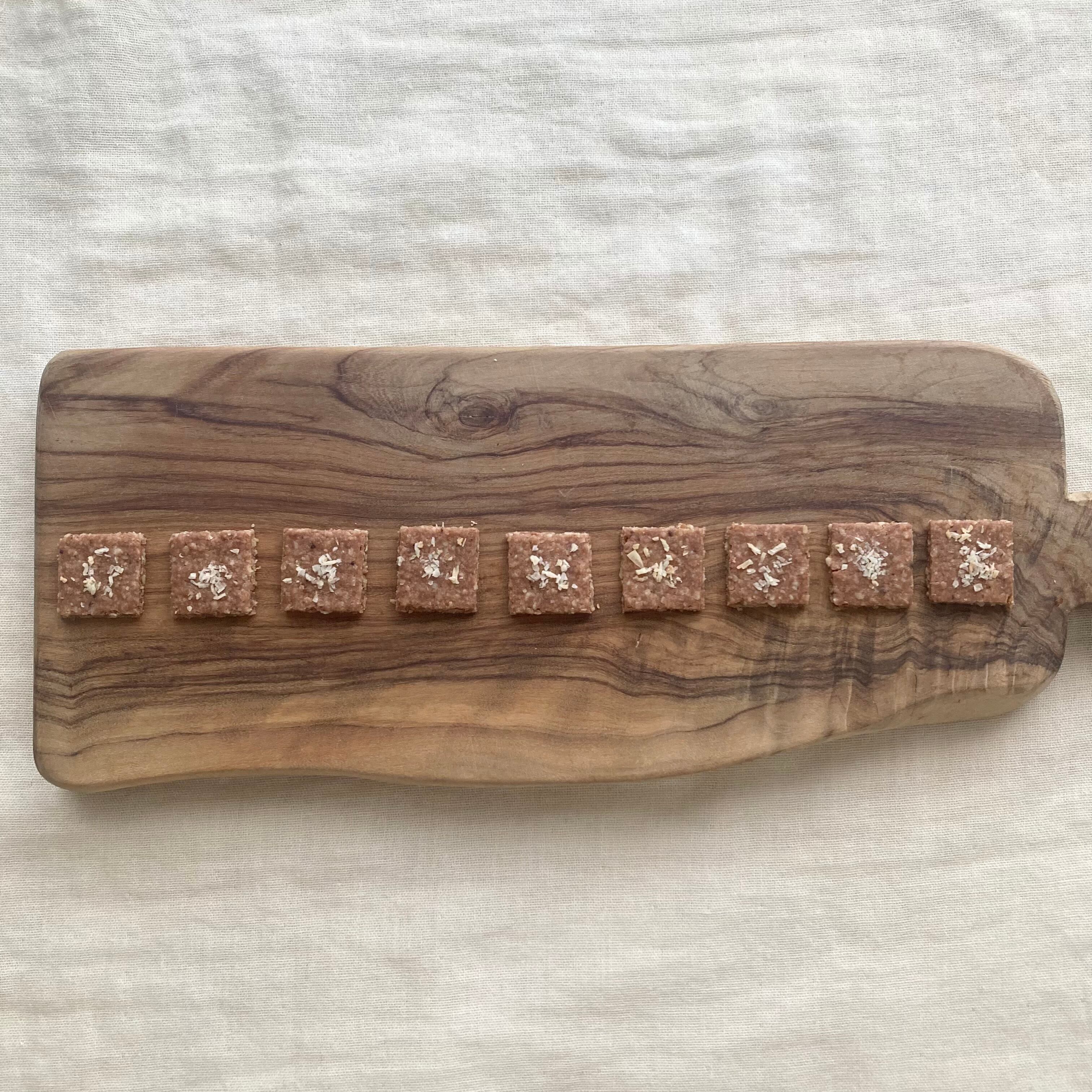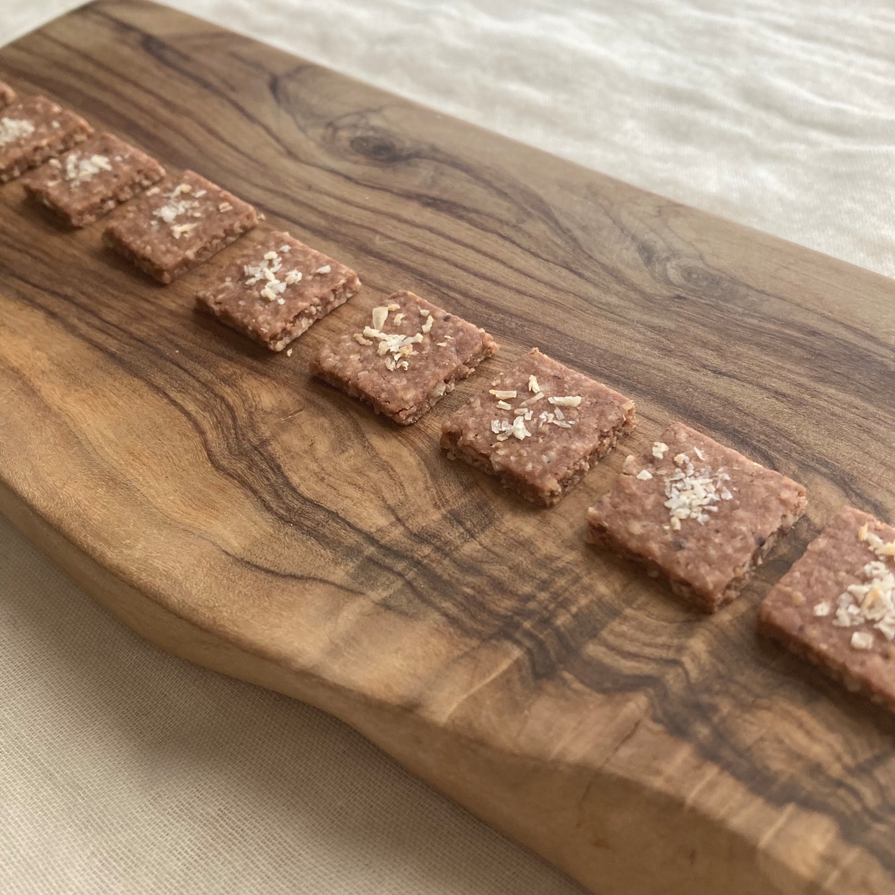 香ばしく焼き上げた米粉のココア生地に、ココナッツのシャリシャリとしたリズムが重なり、噛むほどにカカオの深いコクと溶け合います。