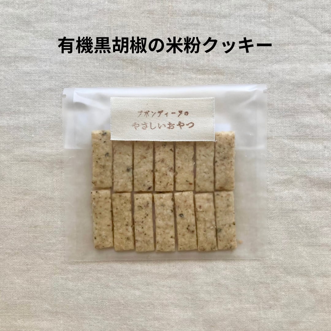 香ばしくザクザク食感が楽しいクッキー生地に、ピリッと爽やかな辛みの粗挽き有機黒胡椒を合わせました。スパイシーでお酒の肴にもなる大人クッキーです♩