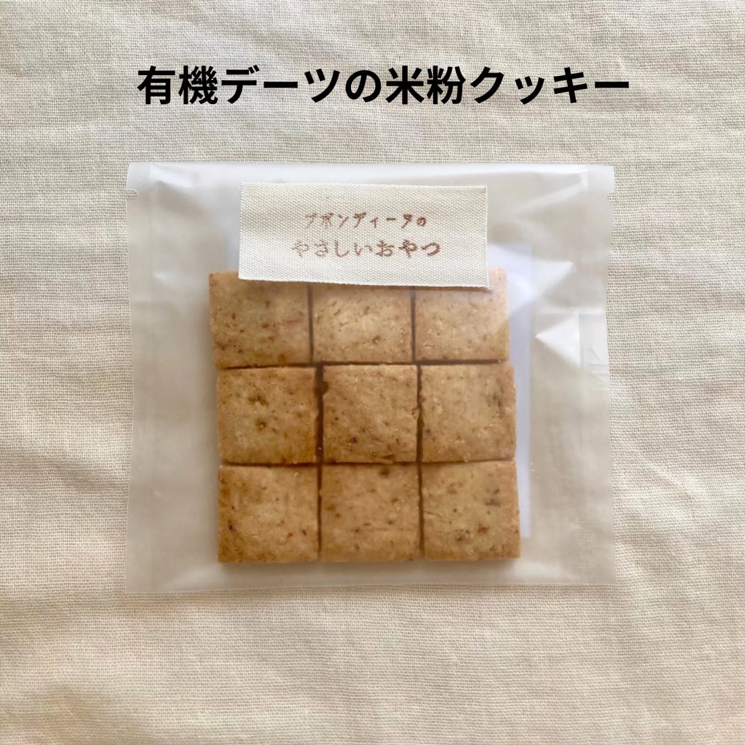 やさしい甘みとコク深い味わいを楽しめる有機デーツを贅沢に使用した無農薬米粉の有機デーツクッキー。自然の恵みがギュッと詰まった濃厚で柔らかい甘みの有機デーツと生地の香ばしさがやさしく重なり、噛むほどに素材の旨みが広がります♩