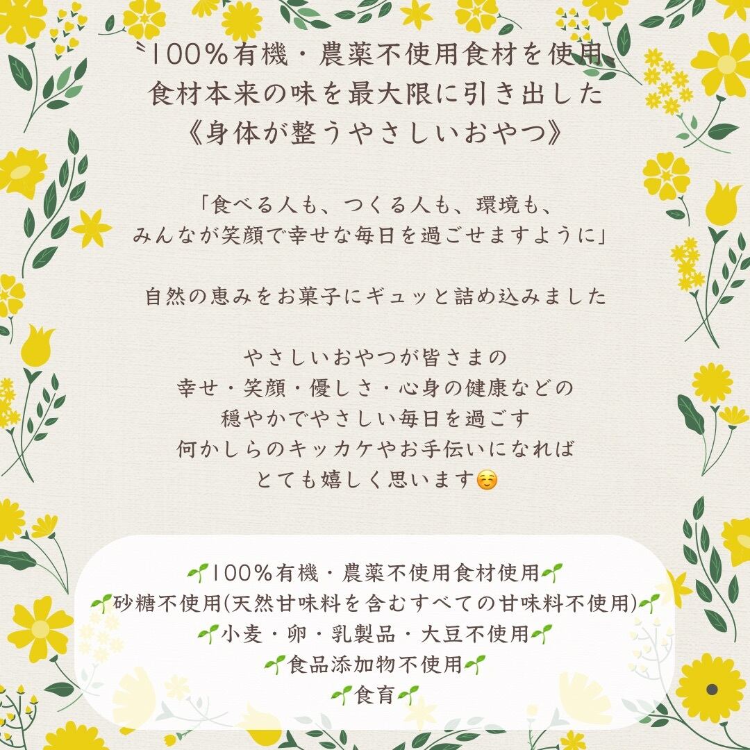 究極にシンプルなレシピで丁寧に焼き上げ、噛むほどに口に広がる有機オーツ麦と農薬不使用米粉の「甘み」「香ばしさ」をお楽しみください♩