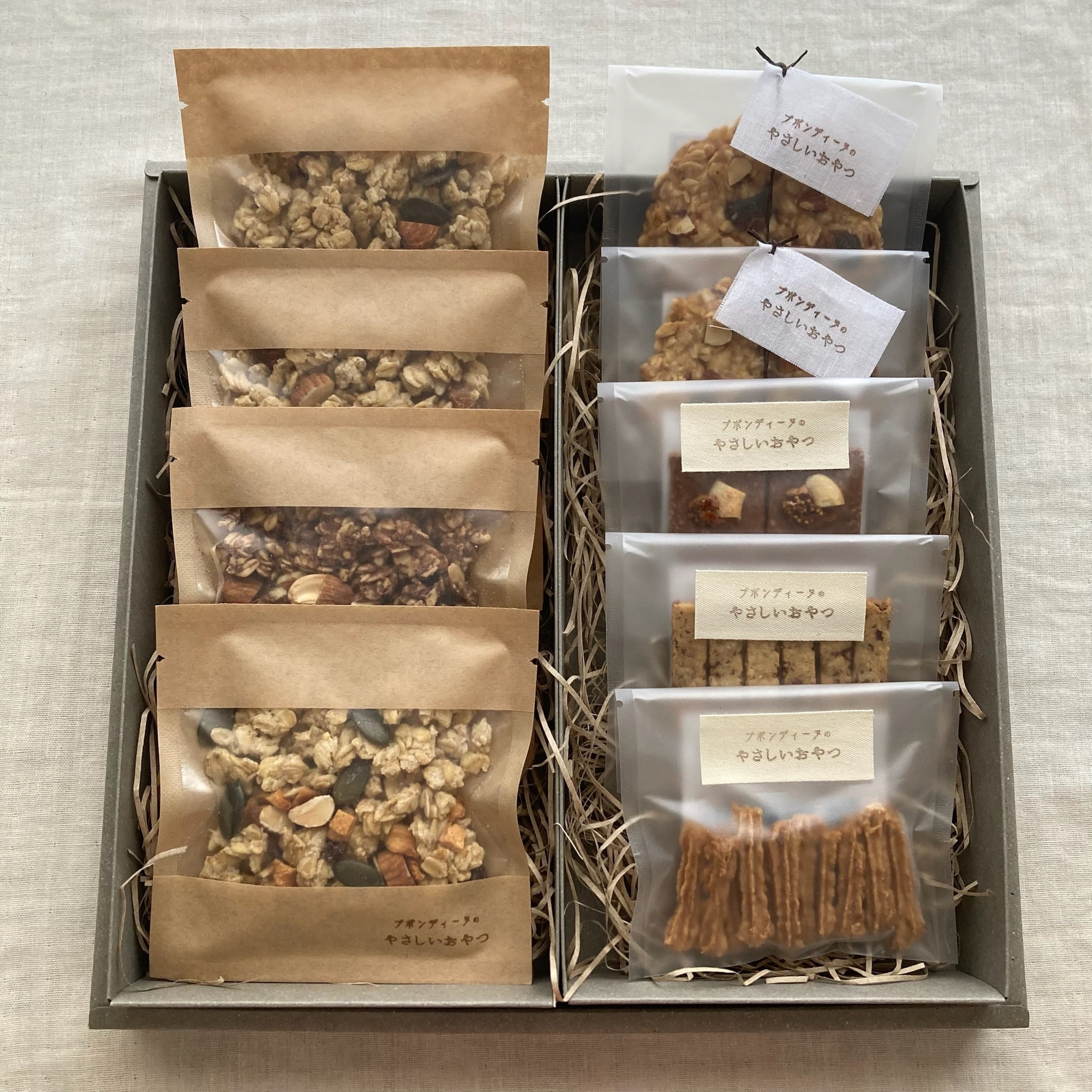 【原材料名】:栽培期間中農薬不使用米粉(米(京都産))、有機オートミール(アメリカ産)、有機アーモンドプードル(アメリカ産)、有機片栗粉(北海道産)、有機ココナッツオイル(フィリピン産)、菜種油(農薬不使用菜種(熊本県産))、有機白ごま(鳥取県産)、自然海塩(長崎県五島列島)、(一部にアーモンド、ごまを含む)
